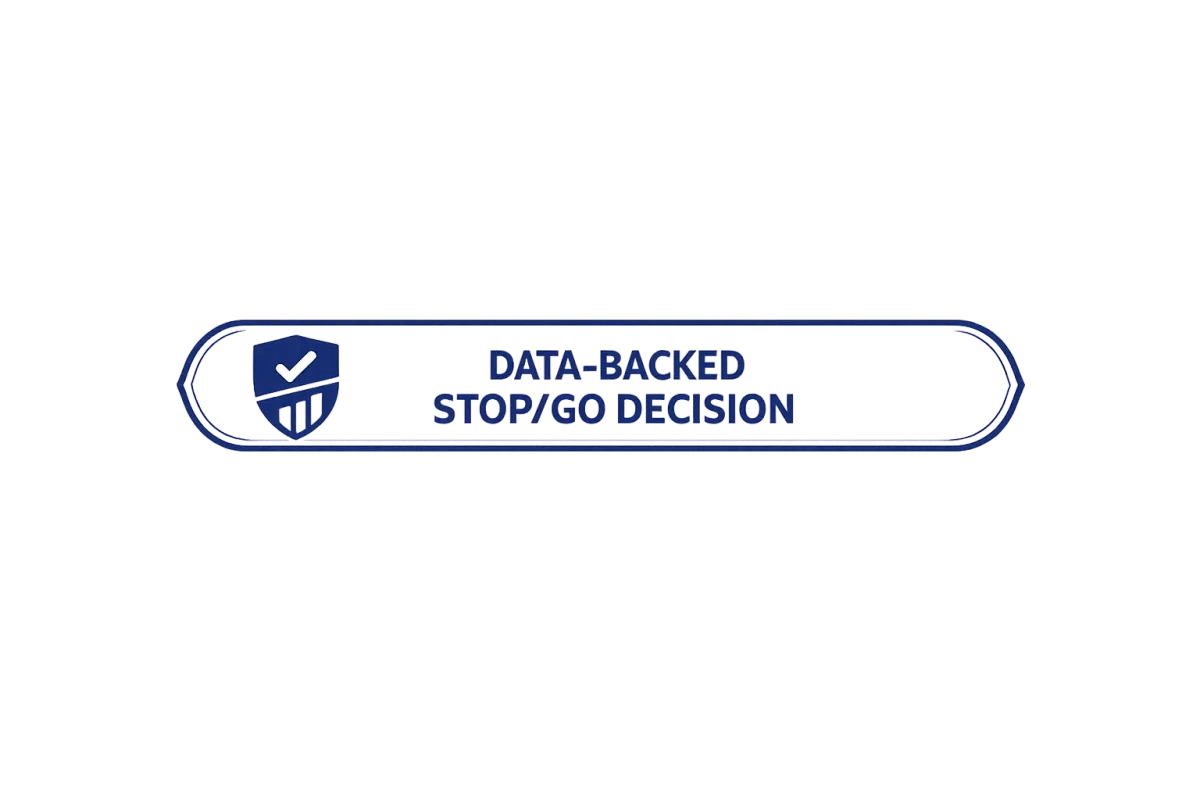 If the Diagnostic shows a coherent path forward, you can optionally continue into a 90-day Clarity Sprint. If it doesn't, you stop - no pressure. The Week-2 stop/go gate is the mechanism. About a third of engagements may result in "pause" or "stop" recommendations. We consider that a success, not a failure.